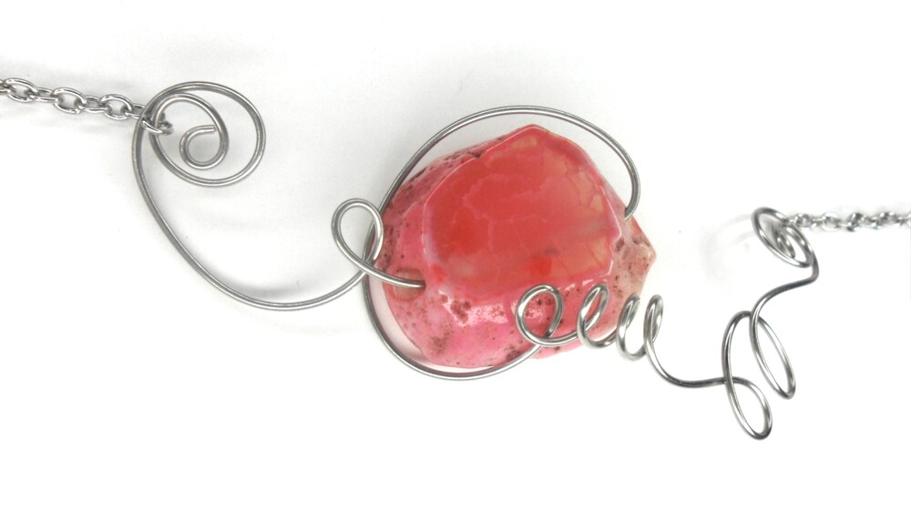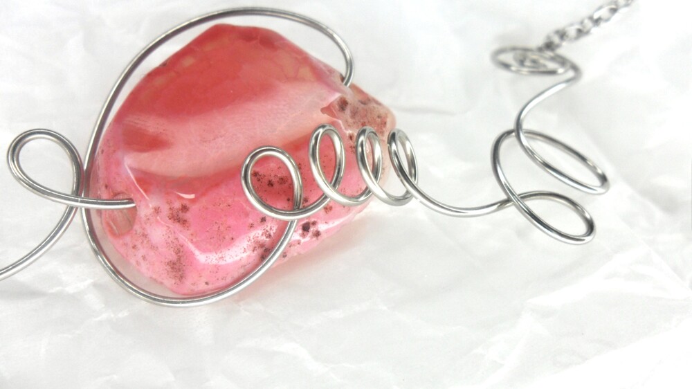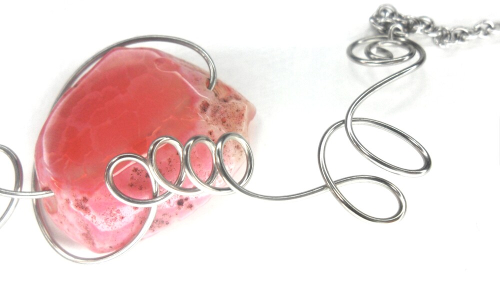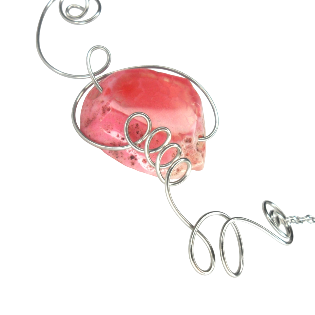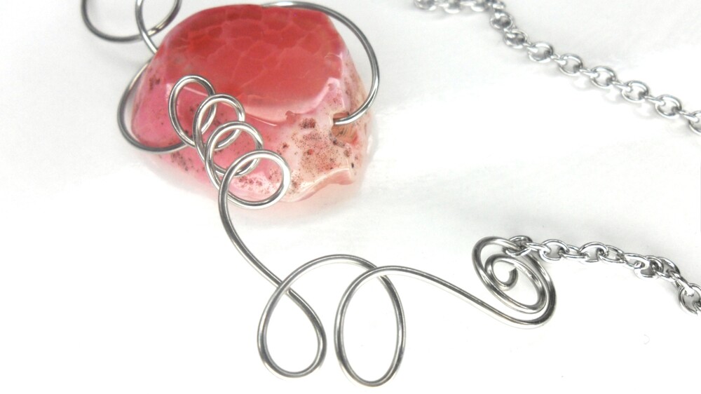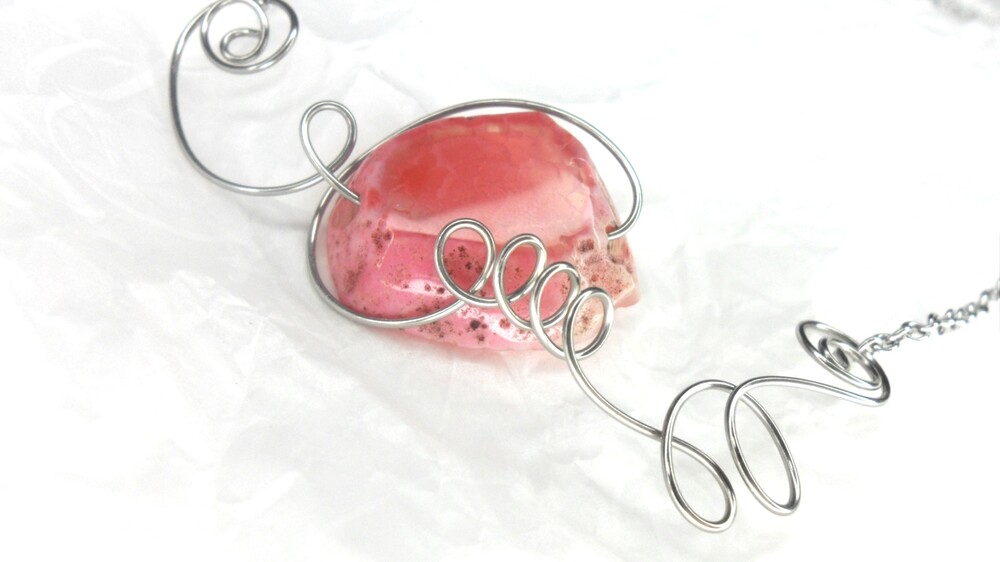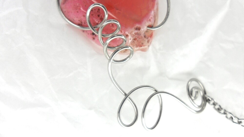 분홍빛 아게이트 원석이 포근히 자리한 목걸이
